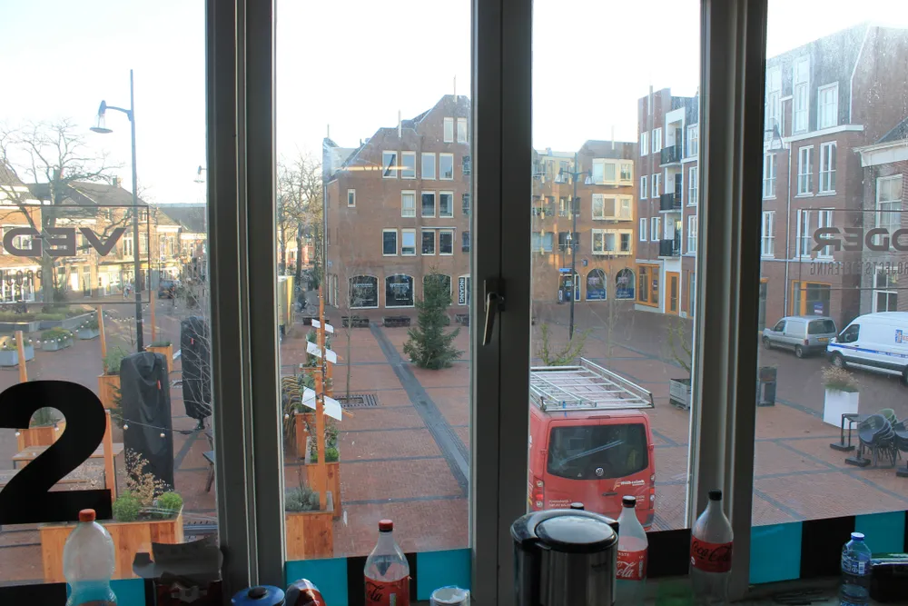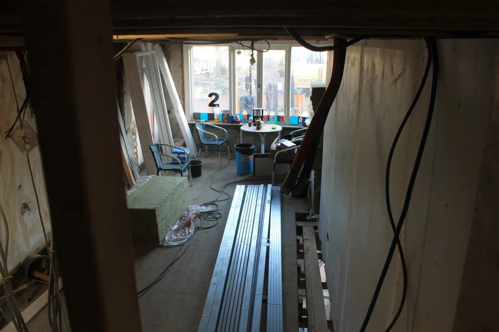 De ramen op de begane grond gaan bijna helemaal tot aan de vloer lopen. Ideaal voor de horecagelegenheid die onderin het pand komt. "Dit is een goede investering", vertelt Tsirakos over de aankoop van het pand. "De Groenmarkt begaat een grote renovatie. Het is fijn voor het plein dat er iets moois mee wordt gedaan. Het verandert echt van een parkeerterrein naar een a-plein voor horeca. Het is de perfecte plek voor horeca. Een bruisend plekje Meppel is het geworden."