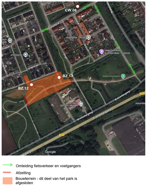 Meppel - Vanaf week 20 wordt gestart met de aanleg van vijf bruggen in Nieuwveense Landen. Naast de autobrug richting Weideblick, worden ook vier voetgangers-/fietsbruggen in de wijk aangelegd. Hierdoor is een deel van het Watertorenpark ten noorden van het Leerwerkcentrum afgesloten.