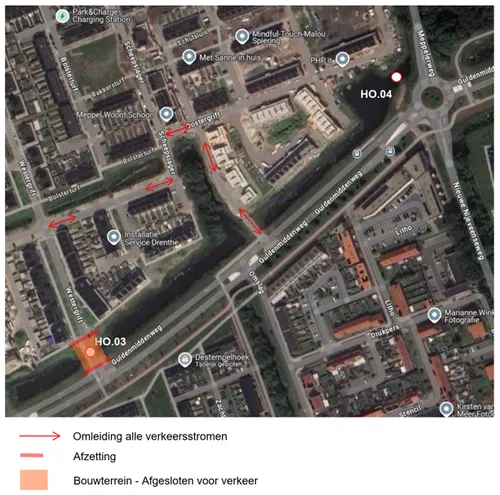 Gedurende de uitvoering zijn de locaties afgesloten met bouwhekken en is de route via deze locaties gestremd. Er zijn omleidingsroutes aangegeven, zodat de woningen bereikbaar blijven. De werkzaamheden duren tot eind augustus 2025, voor de autobrug loopt dit door tot eind oktober 2025.