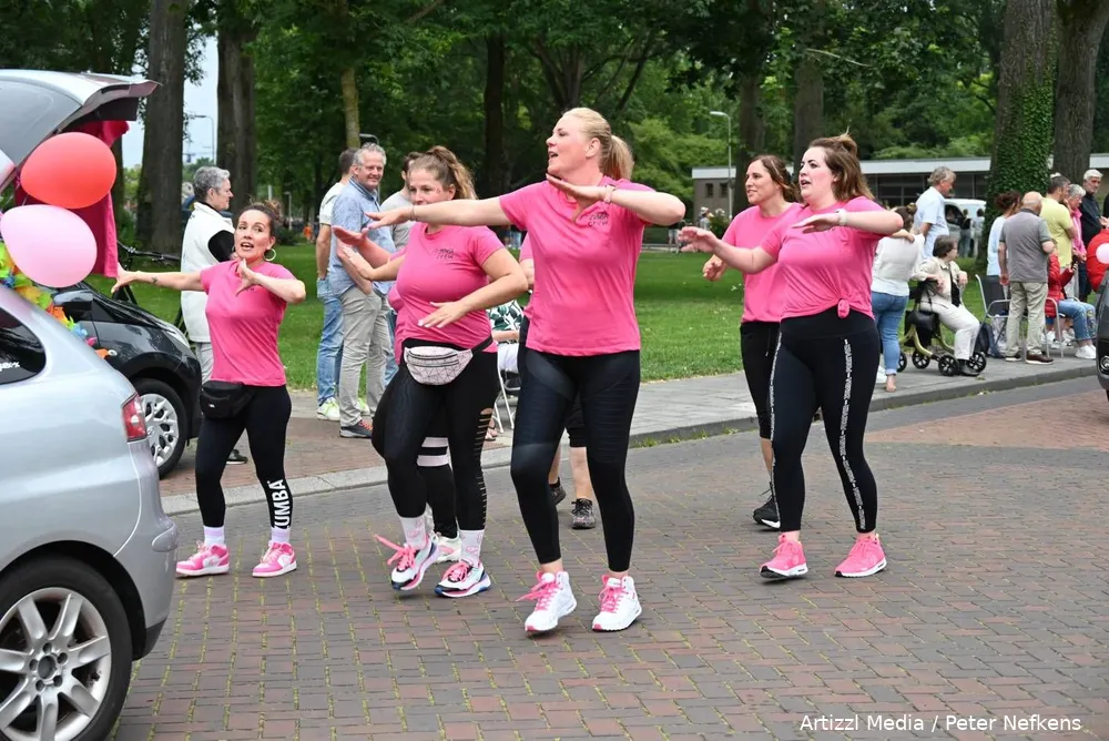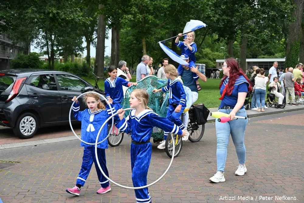 Er stond enorm veel publiek in de wijk Koedijkslanden, blij dat de optocht nu eens een keer in de buurt te zien was. Dat alles was te danken aan de halve afsluiting van de brug over de Reest bij molen de Weert. De optocht was een mengeling van muziek, sport, kleuren, versierde wagens uit Nijeveen en reclamewagens. Die laatste categorie hield zich qua wagens mooi in, ze hadden hun auto's in ieder geval keurig gepoetst.