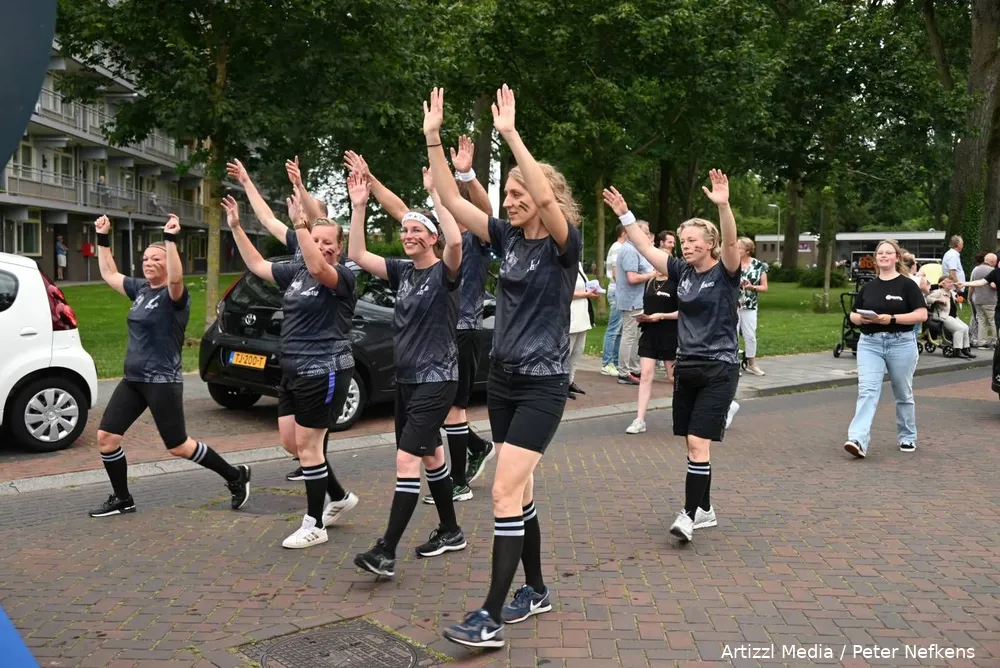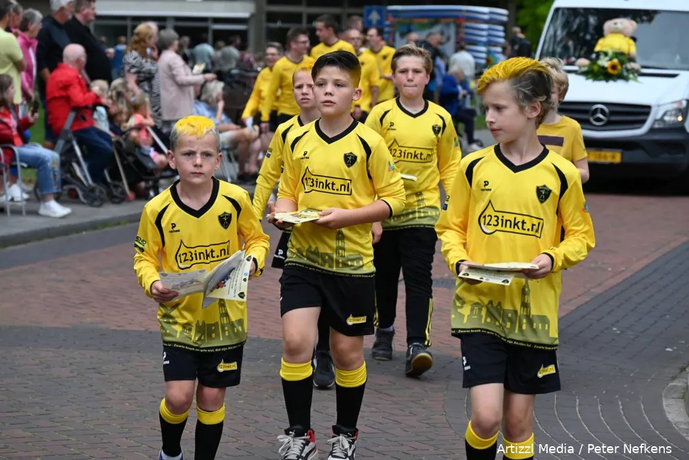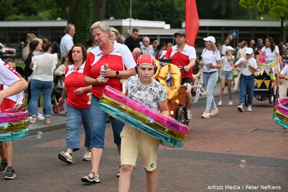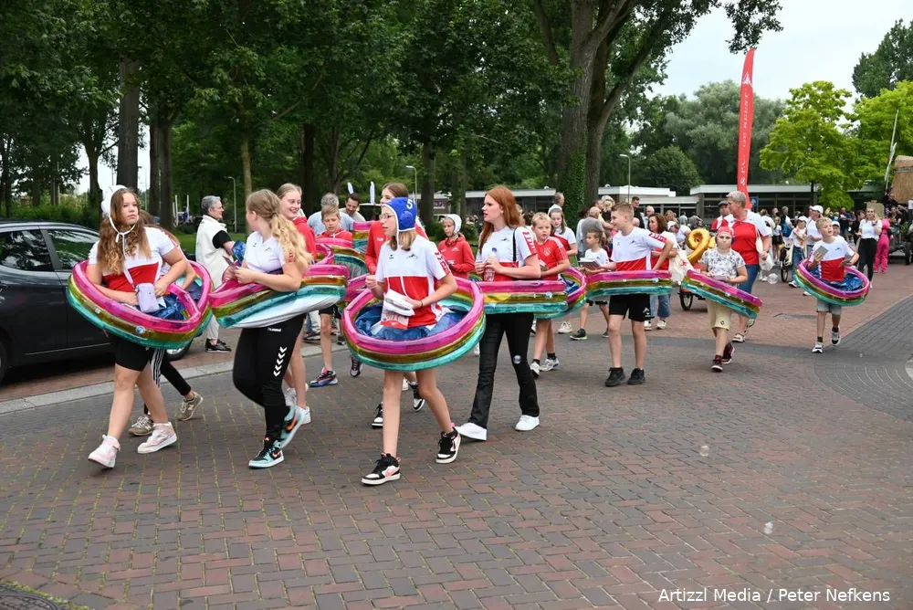 Een aantal (sport)verenigingen had ondanks de zomervakantie voldoende leden weten op te trommelen om mee te lopen en zo te proberen zieltjes te winnen voor de club. Het zijn overigens doorgaans wel altijd dezelfde verenigingen die meedoen. Voor de jeugd was het langs de route prima toeven, want er werd weer van alles uitgedeeld, tot aan ijsjes aan toe. Menige ouder rende even naar huis om deze in de vriezer te doen, anderen wisten er ter plekke wel raad mee.