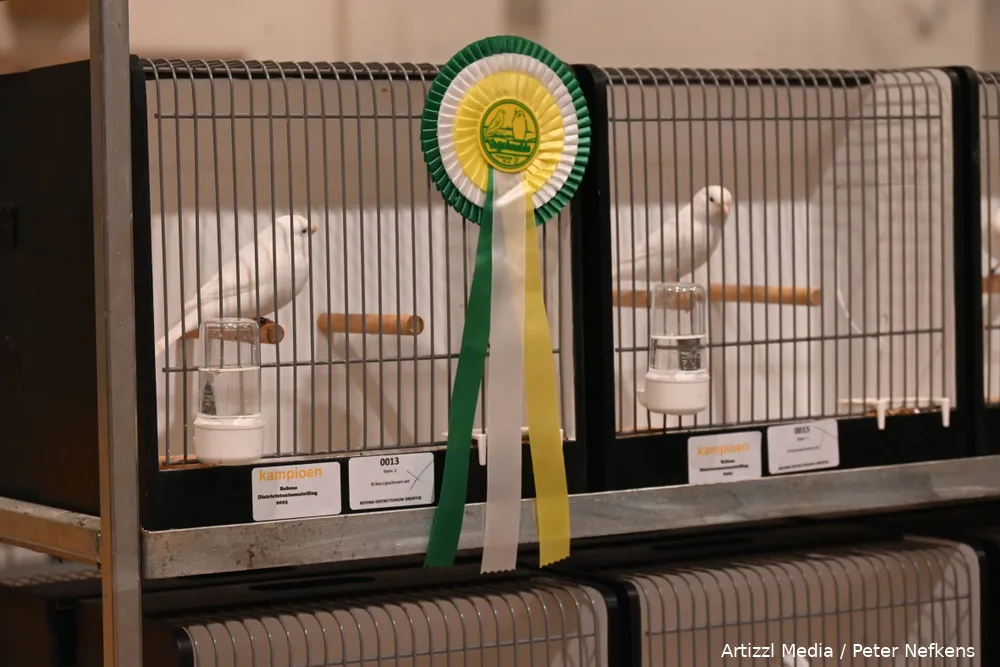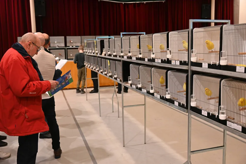 Het was donderdagavond lekker druk in De Buddingehof bij de officiële opening van de tentoonstelling. In de grote zaal was het een gefluit van jewelste en waren de winnende vogels te herkennen aan de rozetten die aan de kooi waren vastgemaakt.