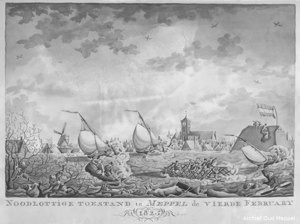 Meppel/Ruinerwold – Wanneer komende dinsdagavond de kerklokken in Meppel, Nijeveen en Ruinerwold luiden, moeten de inwoners niet schrikken. Het gaat om een herdenking van 200 jaar watersnoodramp in het gebied rond Meppel. In de nacht van 4 op 5 februari 1825 was er sprake van een zware noordwesterstorm, springtij, omstandigheden die doen denken aan Zeeland in 1953 in ongeveer dezelfde periode.