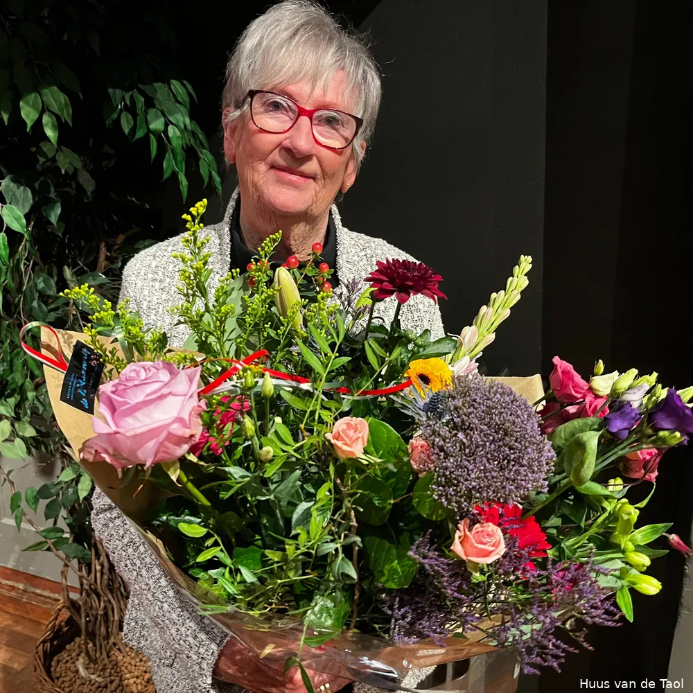 Dwingeloo - In Grand Café De Brink in Dwingeloo heeft directeur Renate Snoeijing uit naam van bestuur en medewerkers de erespeld van het Huus van de Taol bij Ans Klok opgespeld. Dit gebeurde an ’t einde van Taal an Taofel, de gezellige morgen met gedichten, proza en muziek. Ans Klok krijgt het ereteken voor al haar verdiensten voor de Drentse streektaal.